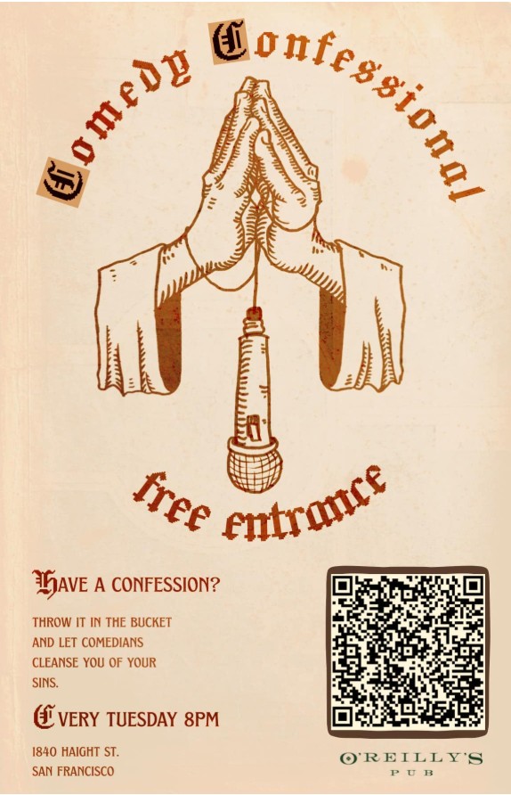 Monthly showcase, the first Thursday of the month, at ØL Beercafe & Bottleshop in Walnut Creek, featuring a rotating collection of comedians. Free show but tips encouraged to help the comedians pay for gas and therapy. Come early, seating has been packed every month.
